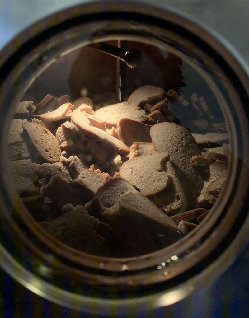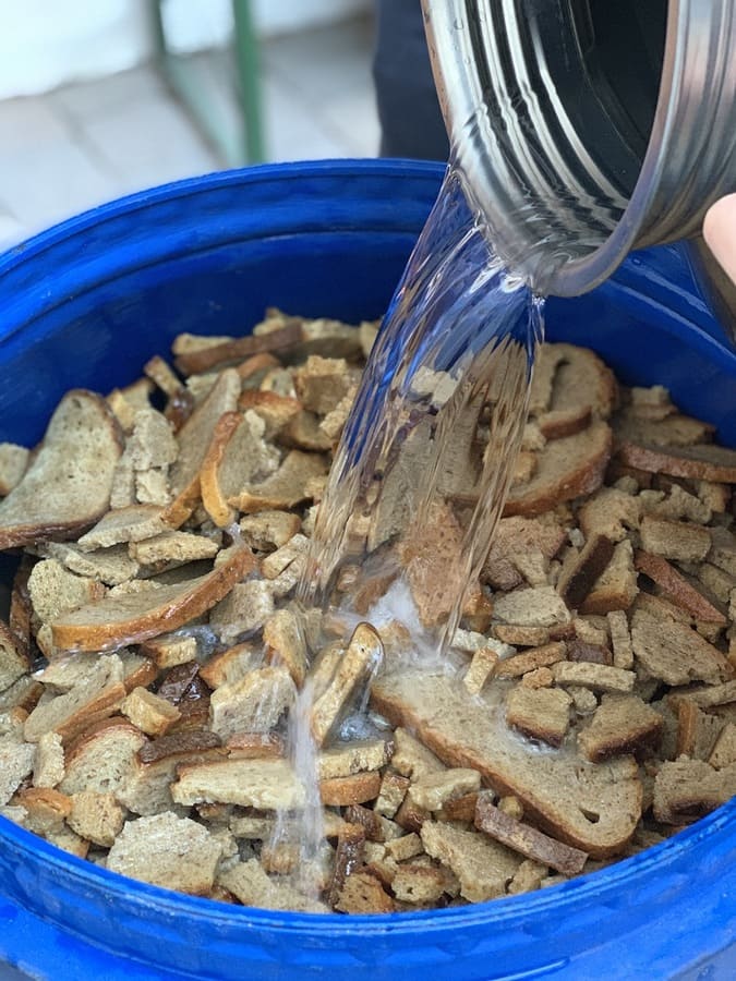 Annalena Scheurich: Die Brote müssen auf jeden Fall hygienisch einwandfrei sein und sollten getrocknet sein, damit diese besser mazeriert werden können. Mazerieren bedeutet in diesem Fall, dass das Brot als Basis des Brandes zerkleinert und in Alkohol eingelegt wird, um die Aromen herauszulösen.