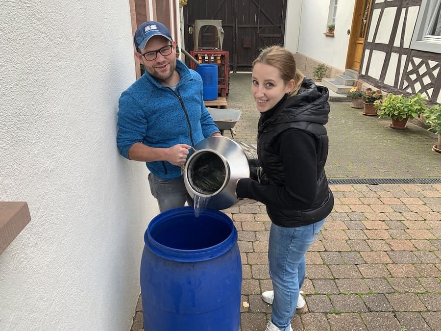 Annalena Scheurich: Je nach Brennglocke des Brennmeisters ist das unterschiedlich. Wir mischten zu Beginn 36 kg Roggenmischbrot mit 90 Liter verdünntem Neutralalkohol. Nach dem Brennen erhielten wir 50 Liter Destillat mit 70 % vol. Alkohol heraus. Um zu sehen, wie stark wir den Brand und den Likör verdünnen müssen, damit diese nicht nur genießbar, sondern ein besonderer Genuss sind, führten wir ein Tasting durch. So kamen insgesamt 100 Liter Brot-Schnaps zusammen.